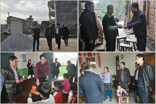 在学校与民革省委共同帮扶点——广昌县盱江镇新安村,工作组一行进行了实地考察,对新安村标识牌进行了选址和测量,为后期的设计制作做好了准备工作。随后,工作组一行分别走访慰问了新安村特困户,详细了解其家庭近况,为他们送上慰问金,并鼓励他们克服困难,自强自立,树立起生活的信心。在新安村九年一贯制小学开展慰问活动,代表学校向贫困学生们发放了助学金,并鼓励他们好好学习,健康茁壮成长。