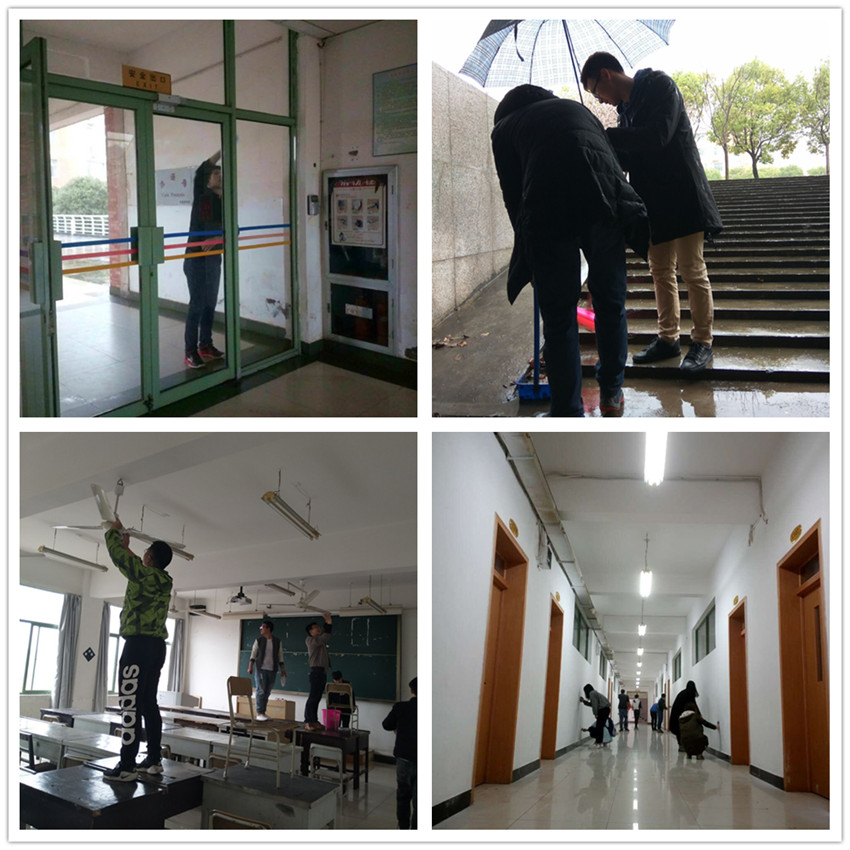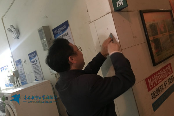 简短的动员会后,学生干部们分组赶赴所负责的楼栋区域。从列队行进、工具认领,到楼层分配、搭档配合,每一个程序都井然有序、一丝不乱。在老师和物业工作人员的指挥调度与指导下,同学们兴高采烈地忙活起来。他们头戴口罩,手持抹布或扫帚,忙碌于公寓走廊、楼梯间、洗衣间,一遍遍地抹过楼梯扶手、楼栋过道与门窗。尤其是异常“顽固”的墙面上小广告,师生们都特别认真细致、不厌其烦。事先准备好的小铲子和砂纸更是派上了用场,一道道污渍、一片片小广告都被成功清除。何兴道深入到25栋学生公寓,一手持铲子、一手拿抹布,仔细地开展墙面清洁工作,为身旁的同学们作出了示范和榜样。