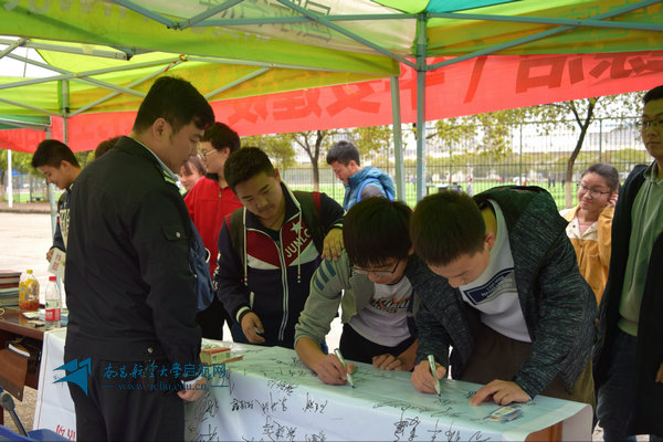 学生参加主题宣传日活动并在留言簿上签名(摄影/学生记者邹昆)