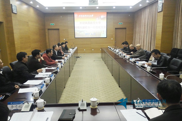 4月11日下午,两校就科研平台建设、人才队伍建设、科研项目研究等合作事宜进行了友好的交流。会上,杨晓光简要介绍了江西省对航空产业的高度关注和大力支持,以及学校对“十三五”开局阶段发展的迫切需求,尤其是在重大科研项目申报、双方重点实验室对口建设、教师互聘等方面希望能够有更加紧密、切实的合作成效。北航科学技术研究院院长王荣桥表示将全力支持昌航重点实验室建设、青年教师培养、国家重大科研项目申报等工作。4月11日上午,杨晓光一行还参观了北航激光增材制造技术国防科技工业研究应用中心、航空发动机气动热力国防科技重点实验室等。