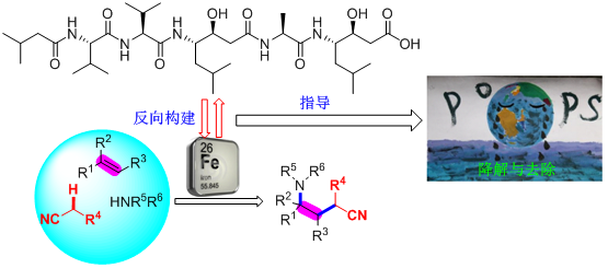 γ-氨基酸及其衍生物是一种天然活性成分,其广泛分布于动、植物体内,例如植物如豆属、参属、中草药等的种子、根茎和组织液中都含有γ-氨基酸及其衍生物,是一类强神经抑制性氨基酸,具有镇静、催眠、抗惊厥、降血压的生理作用。因此,含γ-氨基酸及其衍生物的多肽和蛋白质类药物作为生化制剂也引起广泛关注,国内外已批准上市的约40多种,目前相关研究和开发的此类生化制剂正在成倍增加。多肽和蛋白质类药物分解后得到相应的小分子肽和氨基酸及其衍生物单元,这类物质必将成为一类新的持久性有机污染物。因此,罗胜联教授和李金恒教授团队预见性地开展相关持久性有机污染物的反向构建与去除研究。该项研究通过使用廉价的铁催化剂,高效实现三组分一步合成g-氨基腈及其衍生物。通过该反向构建的方法研究,为小分子肽和氨基酸及其衍生物单元等持久性有机污染物的降解与去除机制研究开辟了一条新的途径。