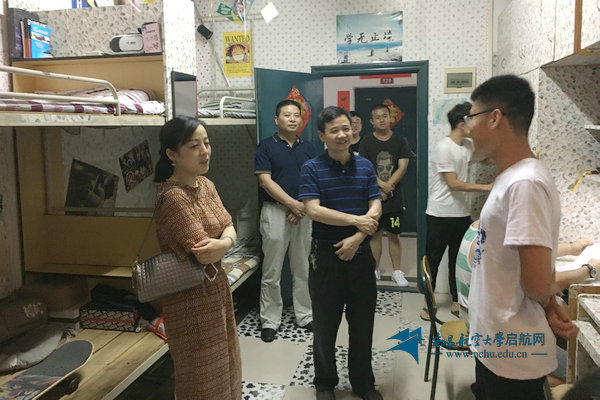 启航网讯 5月18日晚,副校长熊震宇带队深入22栋宿舍楼土木建筑学院宿舍走访调研,后勤处、土木建筑学院相关负责人、部分辅导员陪同走访。