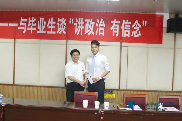 党委书记郭杰忠与毕业生党员代表就“讲政治,有信念”专题开展座谈