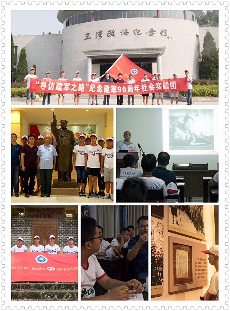 井冈山小分队的队员们于永新三湾,接受了一次别开生面、严肃而又生动的军事教育课。受邀为大家讲课的著名红色理论专家何继明将军饱含深情、娓娓道来,为我们揭开了历史上“三湾改编”的神秘面纱,深入阐述了“三湾改编”的重要历史遗产,分享了建军历程中的红色故事,并鼓励青年学子们要坚定信念,做报效祖国、无愧于人民的当代优秀青年。铜鼓小分队和南昌小分队的队员们纷纷走进大街小巷与居民家中开展“建军90周年”社会调查,通过问卷、入户访谈等调研等形式了解人们对八一起义及人民军队发展历程的知晓度等情况,从而进一步激发爱党拥军之情、传播红色正能量。