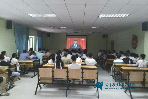 收看建军90周年大会实况大活和实验室会场(图/学工部、团委)