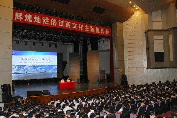 启航网讯 9月15日,江西省人大常委会党组副书记、副主任朱虹来到南昌航空大学,以《辉煌灿烂的江西文化》为题讲述了在“物华天宝、人杰地灵”的江西土地上,孕育着的悠久历史和璀璨文化,涌现出的一代又一代杰出人物。报告由党委书记郭杰忠主持,全体在家校领导、相关职能部门负责人、全体学工干部,飞行器学院、音乐学院、文法学院、国防生学院学生共同聆听报告。
