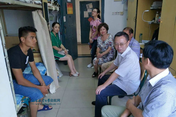 启航网讯 9月16日,副校长何兴道看望2017级伤病维吾尔族学生,学工部、新疆学生工作站、土木建筑学院、文法学院相关负责人及辅导员陪同看望。
