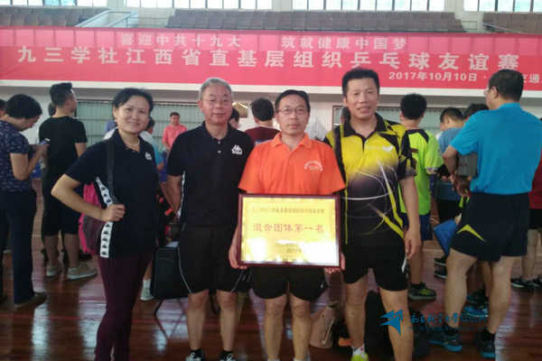 启航网讯 10月10日,九三学社江西省委员会为了迎接中共十九大的召开,在华东交通大学举办了“喜迎中共十九大,铸就健康中国梦”省直基层组织乒乓球友谊赛。我校九三学社委员会由杨加明教授领队,周卫明,雷呈凤和张桂梅老师组成了参赛队伍。在比赛中,我校运动员积极准备、沉着应战,获得九三学社省直机关混合团体赛第一名,杨加明老师获得男子单打第一名,周卫明获男子单打第三名的佳绩。