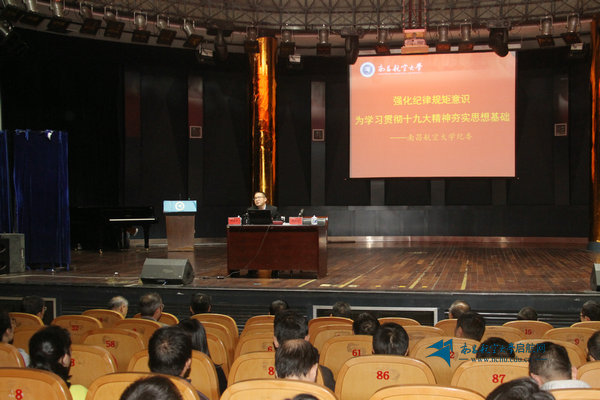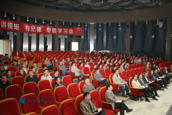 启航网讯 在“两学一做”学习教育常态化制度化推进过程中,在热盼党的十九大胜利召开之际,10月17日下午,我校在音乐厅召开党委中心组理论学习(扩大)会,安排学校纪委书记顾有平以“强化纪律规矩意识,为学习贯彻十九大精神夯实思想基础”为题,专题讲解“讲规矩、有纪律”相关内容。会议由党委书记郭杰忠主持,全体在家校领导、副处以上领导干部、各基层党委(总支)纪检委员及马克思主义学院部分教师代表参会。