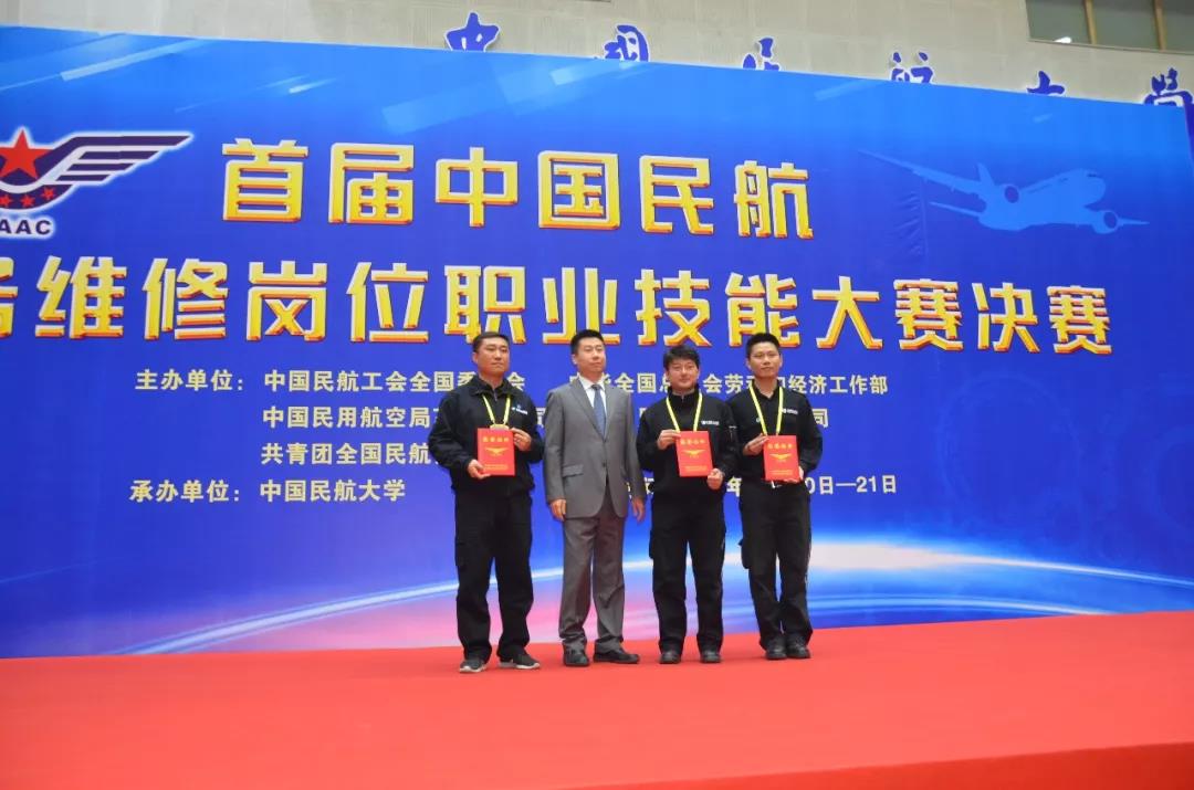 张超校友(右二)荣获首届中国民航机务维修岗位职业技能大赛一等奖