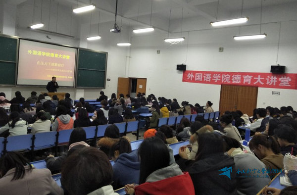 据悉,外国语学院将围绕当前理论热点,学生关注的焦点、热点问题等,从本学期起定期举办“德育大讲堂”系列活动,邀请校内外德育专家主讲,旨在进一步加强中华优秀传统文化、江西红色文化以及社会主义核心价值观等宣传教育,从而形成育人工作的合力。
