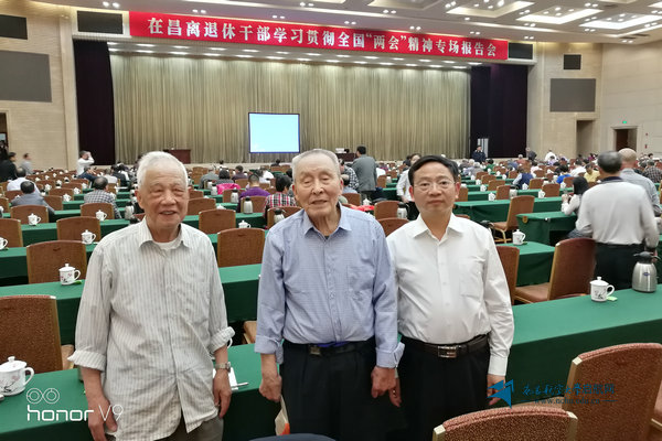 我校离休干部吴稚聪和赵声同志参加在昌离退休干部学习贯彻全国两会精神专题报告会