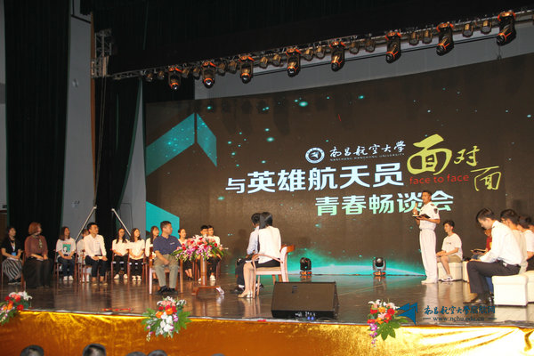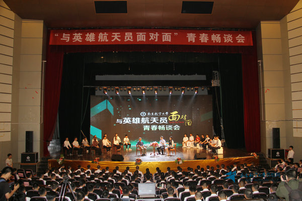 “航天大队里您的昵称是什么?”“第一次来昌航,给您最深的印象是什么”“怎么挑选航天员?怎么挑选执行任务的人选?”“太空中航天员们都进行哪些实验?”“出舱后您最想做的事是什么?”主持人和学生们将自己感兴趣的问题一个个提出,刘旺精彩的解答引发在场观众热烈而长久的掌声。