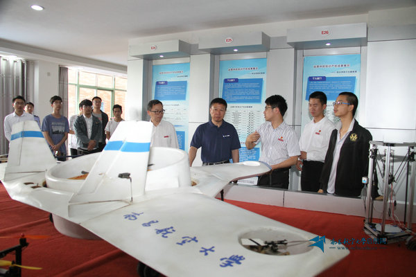 刘旺认真了解我校大学生研制的无人机等创新成果
