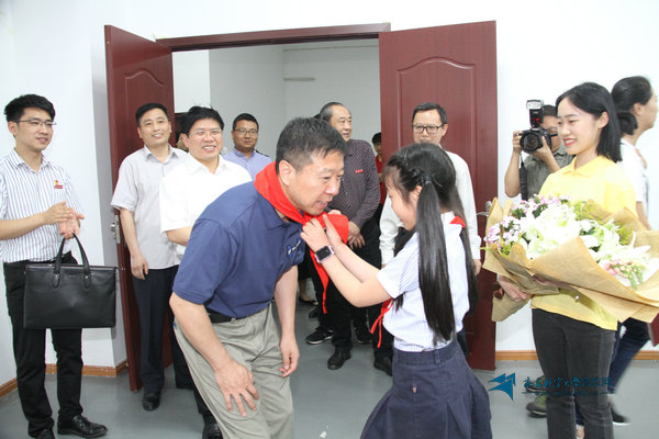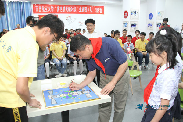 畅谈会后,在党委书记郭杰忠、副校长何兴道的陪同下,刘旺参观了我校大学生创新创业基地,兴致勃勃地参加了“拥抱航天新时代”主题团(队)日活动,并观看了航模队的飞行表演,对我校学生科技创新能力及实践动手能力表示肯定和赞许。