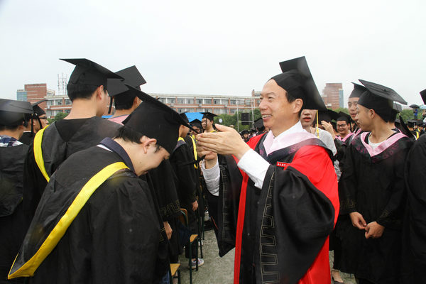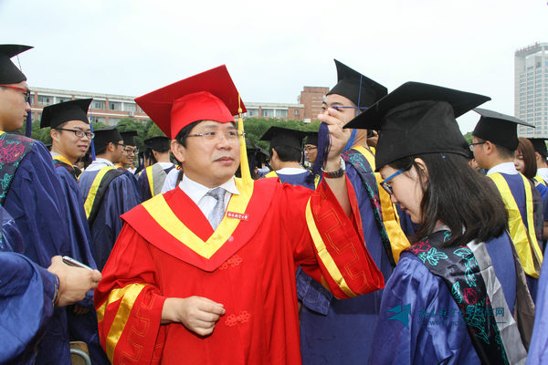周世健、何兴道、刘卫东、聂威、熊震宇、顾有平等校领导为毕业生拨流苏