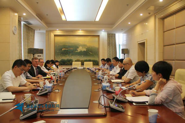 启航网讯 7月10日下午,美国北爱荷华大学校长Mark A. Nook,国际部主任Philip Plourde,电子工程系主任聂宏教授一行来校访问交流。党委书记郭杰忠,副校长杨晓光与Mark A. Nook校长一行进行了会谈。信息工程学院、国际教育学院、国际合作与交流处负责人参会。