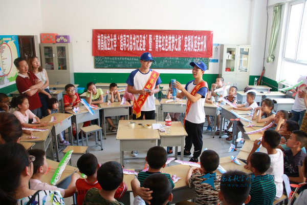 捐赠仪式后,小分队开展了航空航天创新课堂活动。借助“天宫开悟”创新实验教具,实践队师生带领小朋友们开展了丰富多趣的创新和实验活动。他们在“小老师”们的指导下设计、组装,形成一件件充满创意的小作品,慢慢地成就感油然而生了。而后进行的航空航天创新活动中,实践队员们带领孩子们在操场中挥汗如雨,不知疲倦地制作着橡筋动力飞机和水火箭。在制作过程中,来自昌航的大哥哥们还通过详细的讲解传播航空航天知识,激发他们对追逐航空科技的兴趣与航空报国的热情。同时,实践队还征集了孩子们的“微心愿”,秉持“助力航空梦,点亮微心愿”的理念,为点亮革命老区孩子们心中的梦想贡献一份力量。随后进行的苏-27、DJ-PHANTOM航模展示则“引爆”了活动现场,橡筋动力飞机的飞行比赛精彩纷呈,现场师生爆发了热烈的欢呼声与掌声。通过航空特色的科技制作与表演活动,激发了革命老区青少年儿童对航空航天的热爱与情怀,以多维的直观体验与震撼的表演引领着他们感悟天空魅力、种下航空情怀。