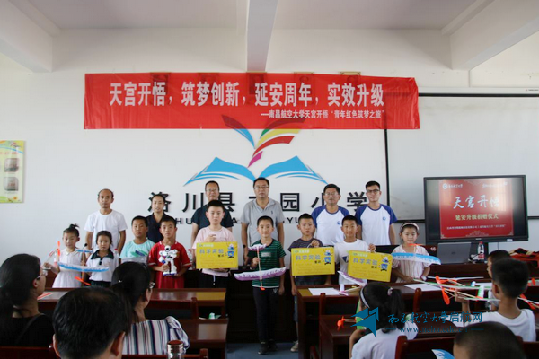 满怀着憧憬与喜悦,南昌航空大学“追寻习近平总书记足迹”暨“青年红色筑梦之旅”暑期“三下乡”社会实践实践队延安小分队的十余名师生踏步来到延安市洛川县,走进丰园小学开展了“天宫开悟”航空航天创客实验室爱心捐赠仪式。洛川县教育局党委副书记孙社民、洛川县丰园小学校长迂花玲、副校长张养锋等出席了本次活动。校长迂花玲致词中表示“天宫开悟”项目在对接延安地区一周年以来,该校充分将创新素质教育渗透到学生的日常学习生活中,并将科学课进行定期的检查和调研,同时开启了一年一度的科技节,带领小朋友们走进实验室开展小创造、小发明活动,取得了良好成效。活动一周年的升级捐赠,是习近平总书记重要回信精神的贯彻落实与践行,良好地展现了昌航青年学子“乐思畅想、情系老区、心怀感恩”的精神风貌与责任担当。