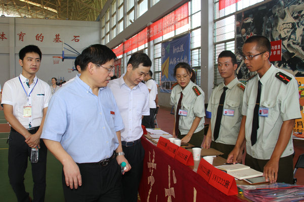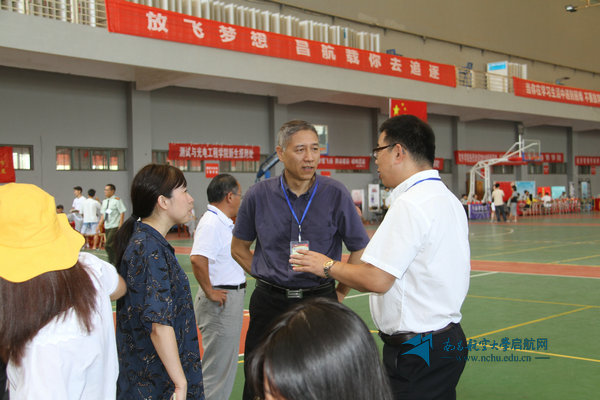 在体训馆迎新现场,郭杰忠、聂威、熊震宇认真查看了新生生活用品供应点,来到各学院报到处了解新生到校情况,仔细询问迎新工作的相关环节,向辛勤工作在迎新一线的师生和正在办理报到手续的新生表示慰问,对迎新工作周到细致的安排给予充分肯定。校领导们来到家长休息区,同新生家长亲切交谈,欢迎各位家长和新生的到来并感谢他们对南昌航空大学的信任。