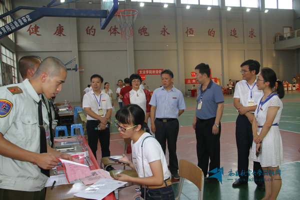 5日上午,校领导们在学工处、宣传部、校团委、现信中心等部门负责人的陪同下,实地查看了生活住宿条件就绪情况,深入体训馆迎新现场看望慰问新生、家长和工作人员并指导迎新工作。