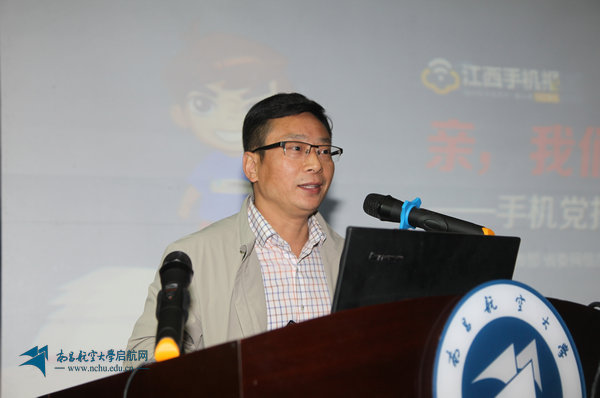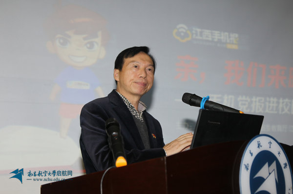 江西手机报总编辑黄新阳分别从好快的新闻、有趣的党报、实用的APP、大学专版专栏等方面介绍了江西手机报的建设情况,并表示手机报以短信、彩信、移动网站、手机客户端等多种平台媒体形式,传播党和政府的声音,积极传递正能量。他鼓励同学们多参与江西手机报的活动,与江西手机报共同成长。