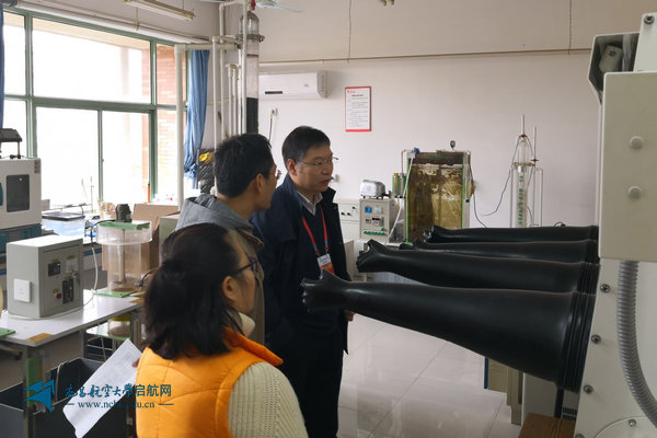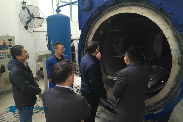 评估专家杨旭静在材料学院查看实验设备