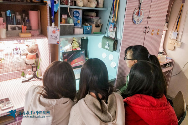 学校团员青年以团小组为单位在寝室收看“庆祝改革开放40周年”大会直播