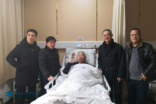 在病房中,郭书记关切地询问刘老的身体健康状况,带去了全校师生的问候,并向老校长汇报了学校近年来的情况。87岁高龄的刘老思维清晰、反应敏捷。他说,昌航是一所非常有特色的学校,我一直关注她的建设和发展。这几年学校发展很好、进步很快,我很高兴。祝愿昌航越办越好!