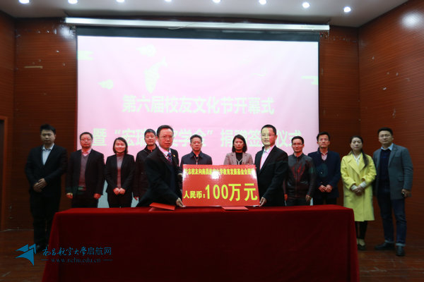 仪式上,吉安市宏瑞兴科技有限公司董事长叶志校友在全体参会人员的见证下正式签约,捐赠100万人民币设立“宏瑞兴奖学金”帮助母校贫困学子。