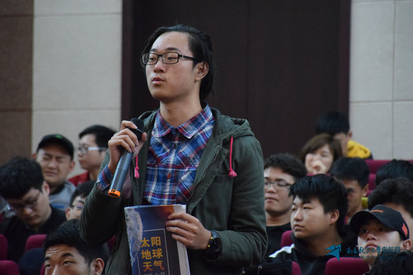 赠书环节后,张庆红教授为大家带来一场别开生面的气象科普讲座。张教授运用丰富的案例、直观的图表、生动的语言,讲述天气预报的制作过程,探讨天气预报的准确率,重点讲解了冰雹生成问题。在讲座交流提问环节,张教授针对大家的提问一一给予解答并赠送纪念品以示鼓励。