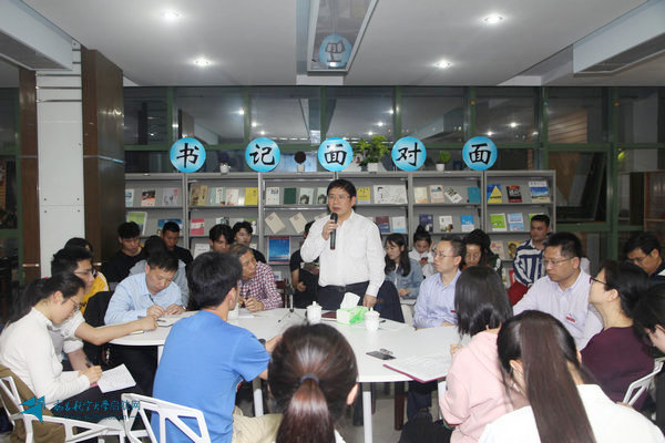 启航网讯 4月19日晚7点,校党委书记郭杰忠在副校长何兴道、聂威及党政办、学工处、校团委、科技学院等相关负责人的陪同下,来到大学生活动中心的“学生成长之家”,与来自全校各学院的百名学生代表开展首次“书记面对面”活动。现场被挤得水泄不通,同学们期待着与书记来一场近距离的交流。