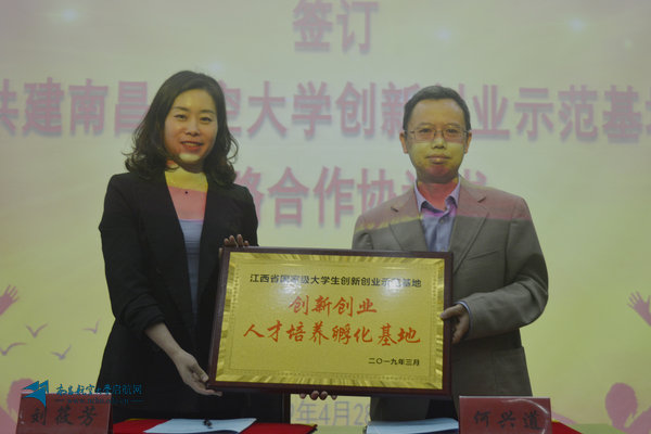 期间,何兴道代表学校与江西省国家级大学生创新创业示范基地签订了《共建南昌航空大学创新创业示范基地战略合作协议书》,并互授牌匾。