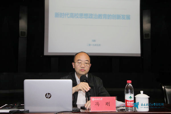 报告会上,冯刚教授紧密结合历史和现实、理论与实践,对高校思想政治教育创新发展进行了解读:一是回顾了改革开放以来高校思想政治教育政策发展,指出思政工作者要做有思想的行动者、关注实际问题的研究者,要有世界眼光、中国情怀、时代特征,并在总结过去经验的基础上,形成机制、推动工作,不断提升素养,从而持续关注政策的设计和发展。二是围绕学习全国教育大会和思想政治理论课教师座谈会精神,强调高校思政工作者应严格对标习近平总书记在座谈会上提出的对思政教师的“六点要求”和思政课堂的“八个统一”;要通过教书育人、科研育人、实践育人、管理育人、服务育人、文化育人、网络育人等理直气壮开好思政课,深化思政课程教学研究,分析思政课教学规律,把握思政课教学未来趋势。三是就如何落实好高校立德树人根本任务,提出要立足本来、吸收外来、面向未来,以学生成长成才为中心,注重协同育人、合力育人,结合新时代大学生特点有针对性地开展思想政治工作,从而培养担当民族复兴大任的时代新人。
