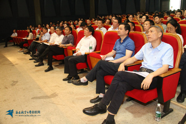 全体校领导、全校中层干部、省部级科研平台负责人、全体学工辅导员及学生代表到场聆听