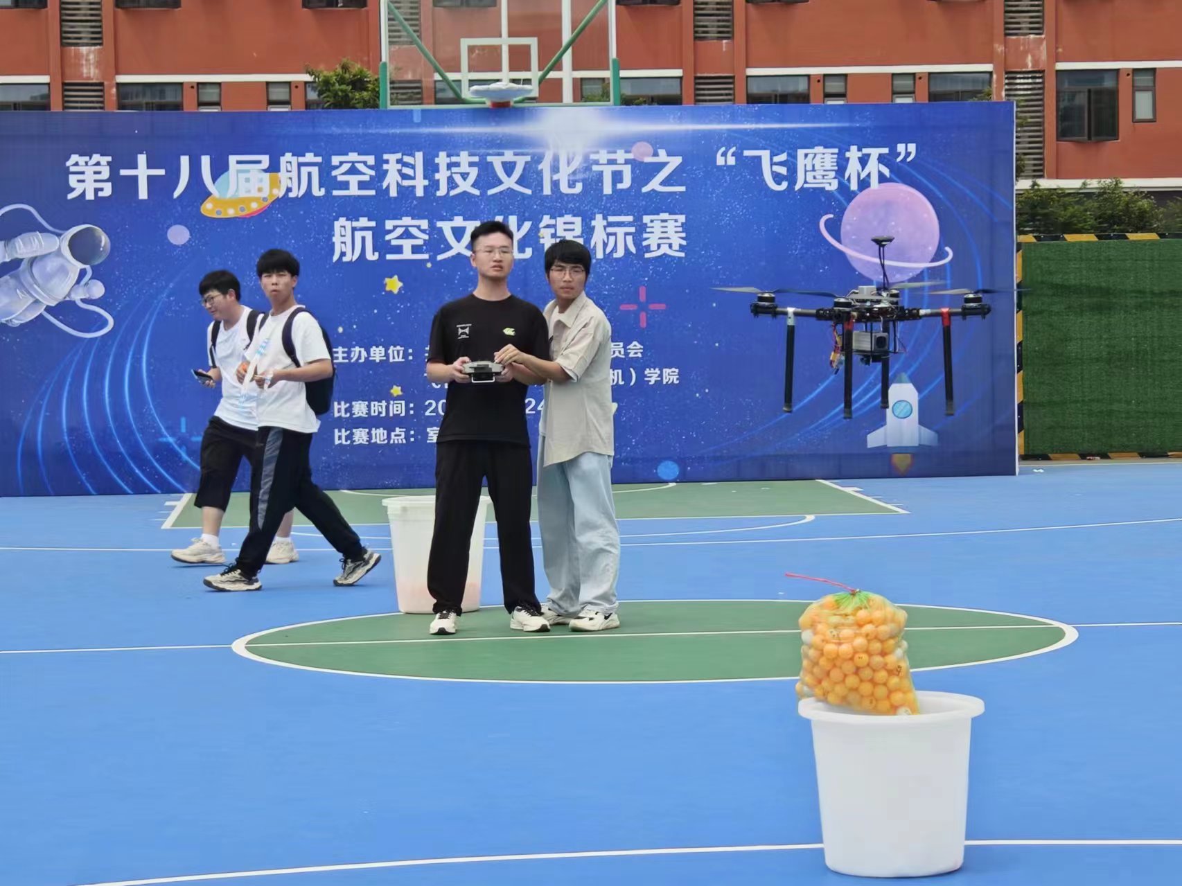 迎着朝阳,航空大道上千名学生高唱国歌,以最庄严的仪式致敬祖国、礼敬航天。火箭广场上人潮涌动,集科技与娱乐一体的“共襄星汉”科技嘉年华中“问天寻梦”航天知识答题竞赛、“宇航员训练微体验”、“我的魔法星球”主题绘画活动等11个活动正在如火如荼地进行中。篮球场上,垂直起降载运比赛、橡筋动力模型飞机竞时比赛、纸飞机投掷比赛吸引了无数同学的参与,更承载着南昌航空大学学子对祖国航空航天事业的美好向往与衷心祝福。大学生活动中心陈列着的“航空事业发展成就”主题图文展,更让同学们无比激动和自豪。