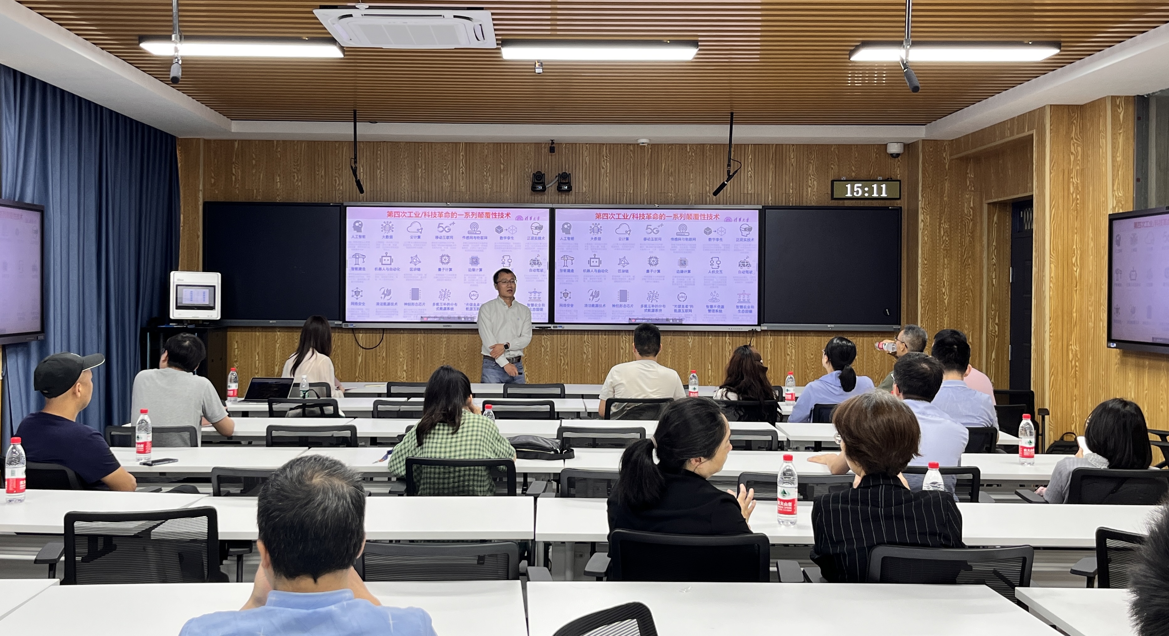 启航网讯 为引导我校教师理解并能够运用人工智能技术和创新思维解决课堂教学和教学研究等实际问题,5月23日下午,我校教务处联合清华大学学堂在线平台,在C103教室召开AI课程建设经验分享会。会议邀请清华大学首批主持开展人工智能赋能课题教学的课程负责人龙瀛教授作专题讲座,各学院教师代表到场聆听。