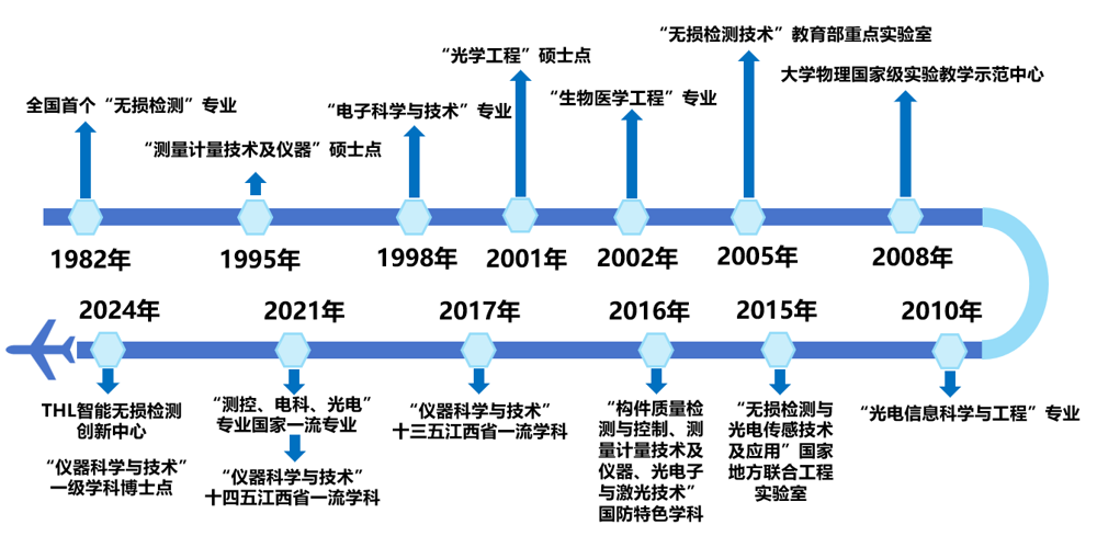 南昌航空大学仪器科学与光电工程学院源于1980年成立的无损检测教研室,1982年率先创办了国内首个“无损检测”本科专业,被誉为无损检测高级人才培养的“摇篮”;1999年4月组建了测试技术与控制工程系;2006年9月升格为自动化学院;2009年7月因学科布局调整,成立了测试与光电工程学院;2024年8月更名为仪器科学与光电工程学院。