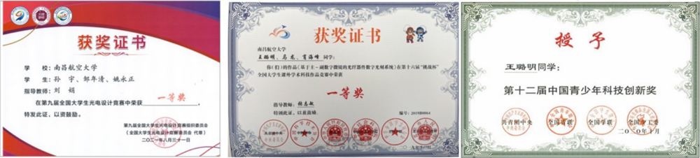 依托学院国家级教学科研平台、联合实验室和产学研合作中心,跨学科、跨领域组建科研创新团队,将先进检测技术与“国家需求”“地方需要”相结合,推动科研项目转化为实践教学、创新训练和学科竞赛项目,跨学科、跨专业选拔优秀学生组建“创新实践班”,在学生培养过程中融入学科前沿、工程难题及技术瓶颈,推进跨校、跨界、跨国合作,提升学生科技创新和解决复杂工程问题的能力,培养服务国家重大需求和地方经济社会发展需要的先进检测技术领域拔尖创新性人才。近年来,学院学生荣获“挑战杯”国赛一等奖、IEEE智能计算大赛世界冠军、“华为杯”中国研究生数学建模竞赛一等奖、全国大学生物理实验竞赛一等奖、全国大学生光电设计竞赛全国总决赛一等奖金奖、全国大学生集成电路创新大赛全国总决赛一等奖、中国青年志愿服务项目大赛金奖(江西高校唯一)、中国青少年科技创新奖等国家级竞赛奖90余项,省部级竞赛奖200余项。“天宫开悟”创新项目获得第三届中国“互联网+”大学生创新创业大赛“青年红色筑梦之旅”新锐创意奖。