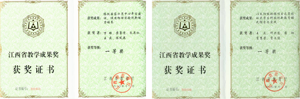 学院设有测控技术与仪器、电子科学与技术、生物医学工程、光电信息科学与工程4个本科专业和1个大学物理教研部(实验中心)。其中,测控技术与仪器为国家一流本科专业建设点、国家级特色专业和教育部卓越工程师计划专业;电子科学与技术为国家一流本科专业建设点、江西省品牌特色专业和江西省五星专业;生物医学工程为江西省一流本科专业建设点;光电信息科学与工程为国家一流本科专业建设点和江西省五星专业。学院荣获省部级教学成果奖12项,其中一等奖6项;获批4个省级高水平本科教学团队、2个省级示范研究生导师创新团队。