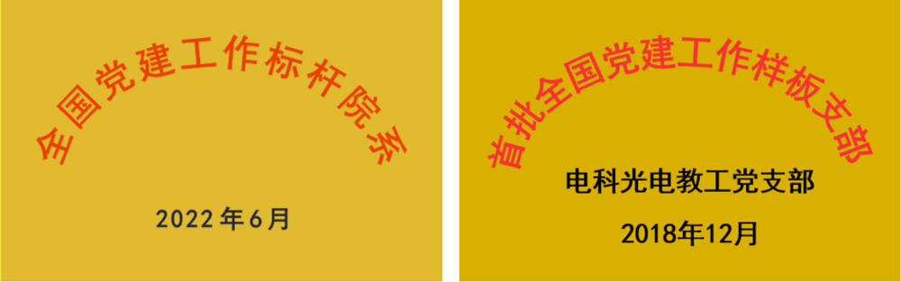 学院高质量党建引领推动事业高质量发展成效显著。2018年电科光电教工党支部获批教育部首批全国党建工作样板支部培育建设单位,并于2021年顺利通过验收。2019年,获批教育部第二批全国党建工作标杆院系培育建设单位,并于2022年顺利通过验收。2021年学院党委获中共中央颁发的建党百年“全国先进基层党组织”荣誉称号。