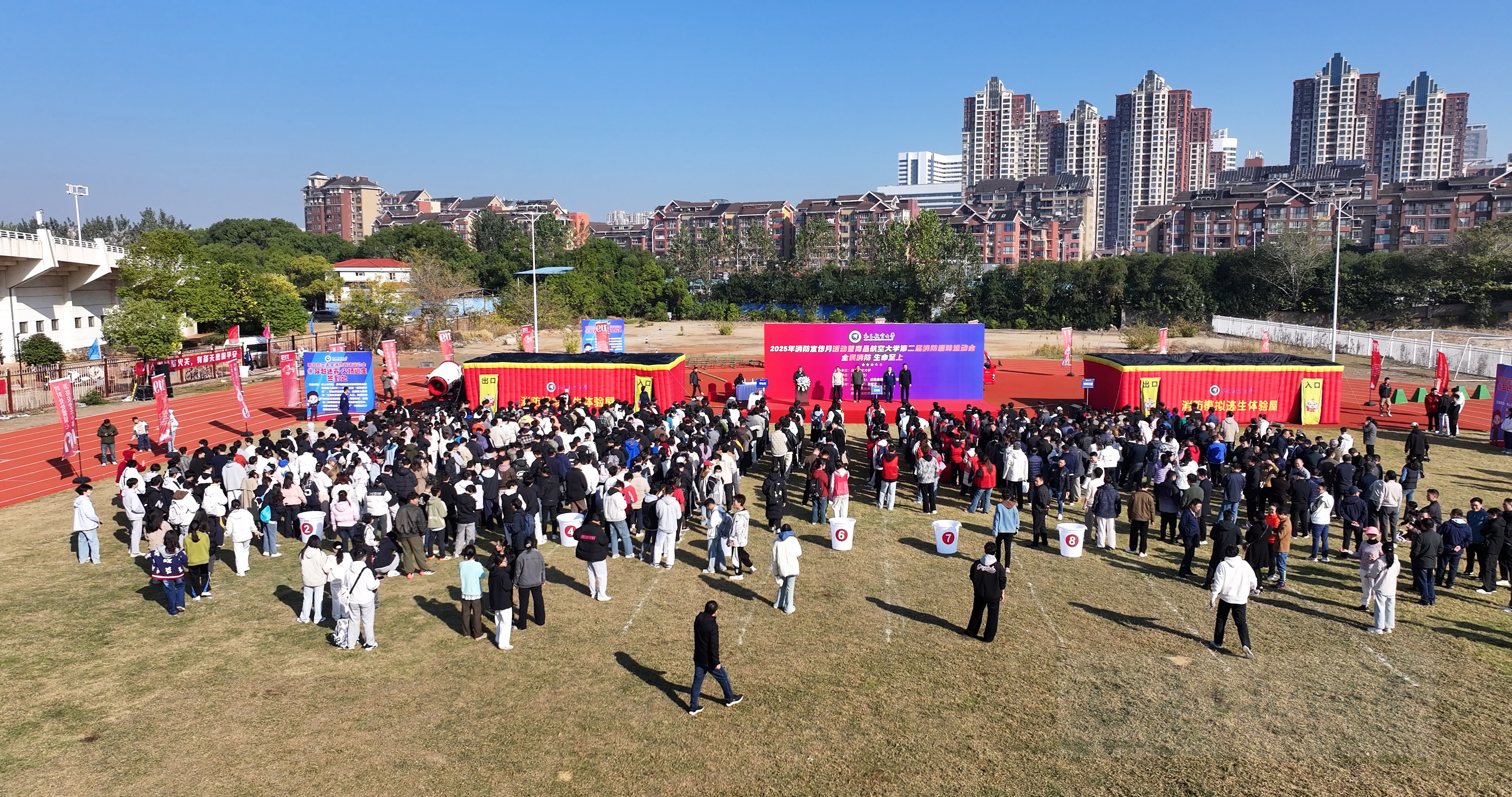 启航网讯 11月22日,我校第二届消防趣味运动会鸣锣开赛。校党委常委、副校长郭正华,南昌市消防救援支队大院大队大队长黎昱辰出席开幕式。