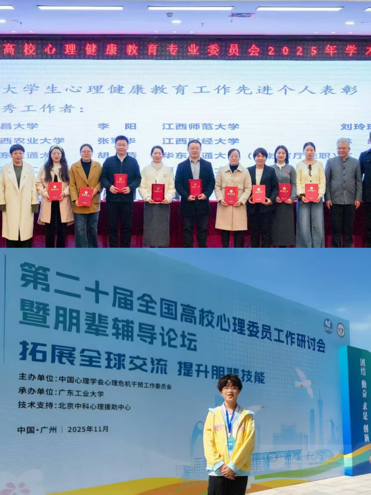启航网讯 近日,从江西省高校心理健康教育专业委员会和全国高校心理委员工作平台相继传来喜报,我校学生工作部(处)大学生心理健康教育与咨询中心赵军老师荣获2025年江西省“大学生心理健康教育工作先进个人”称号,软件学院张桂阳同学成功入选2025年“全国百名心理委员风采展”。这两项荣誉的获得,充分展现了我校心理健康教育工作的扎实成效。