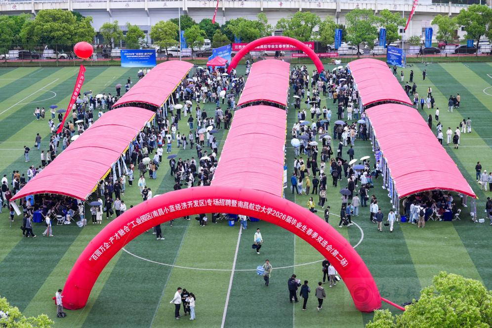 启航网讯 4月21日,南昌航空大学联合南昌小蓝经济开发区成功举办“百园万企·产才融合”专场招聘暨2026届毕业生第二场春季大型双选会。南昌市及下辖区、绍兴市新昌县、衢州市龙游县等多地人社部门及红谷滩工会,积极组织用人单位组团来校招才引智。江西省就业创业服务中心党委书记尹建明深入现场指导,我校党委常委、副校长周世健,各学院党委书记、副书记、就业干事、毕业班辅导员及班主任及校内外毕业生4000余人参会。