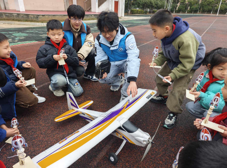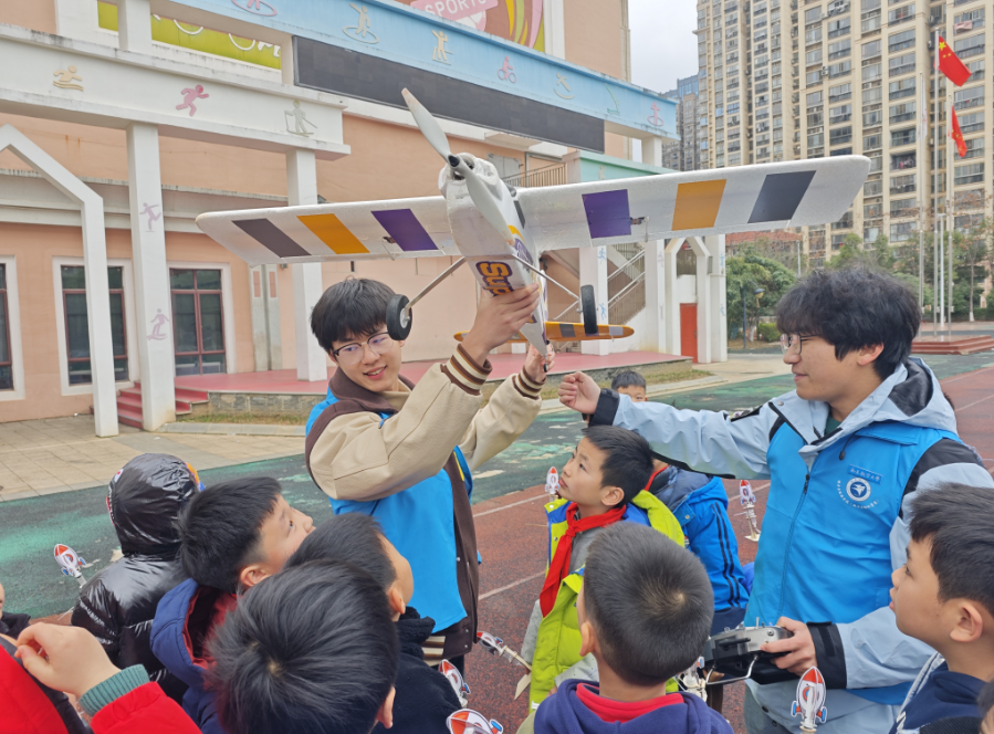 中国教育报-中国教育新闻网讯(通讯员 舒越 记者 甘甜)“哇!快看!”3月4日,在江西南昌市南昌大学附属小学前湖分校校园,南昌航空大学志愿者带来的航模表演吸引了不少学生围观。在第62个学雷锋纪念日来临之际,这群大学生志愿者通过航模飞行表演、航空知识科普等,为小学生们开展了一场别开生面的志愿活动。