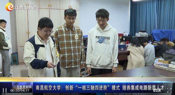 您的位置: 首页 >新闻中心>媒体南航>详细内容 媒体南航 【江西教育电视台】南昌航空大学:创新“一核三融四进阶”模式 培养集成电路新质人才 来源: 作者: 摄影: 发布时间:2026-04-07 浏览次数: 次 【字体:小 大】 启航网讯 集成电路产业是国家战略性产业,我校仪器科学与光电工程学院直面行业痛点,创新构建“一核三融四进阶”集成电路新质人才培养模式,为产业输送高素质人才。江西教育电视台江西教育新闻对此进行报道。 媒体链接:江西教育电视台:https://mp.weixin.qq.com/s/ZIc9ns7W4frX0Fv-__xofw 责任编辑:李梦遥 相关内容 【打印正文】