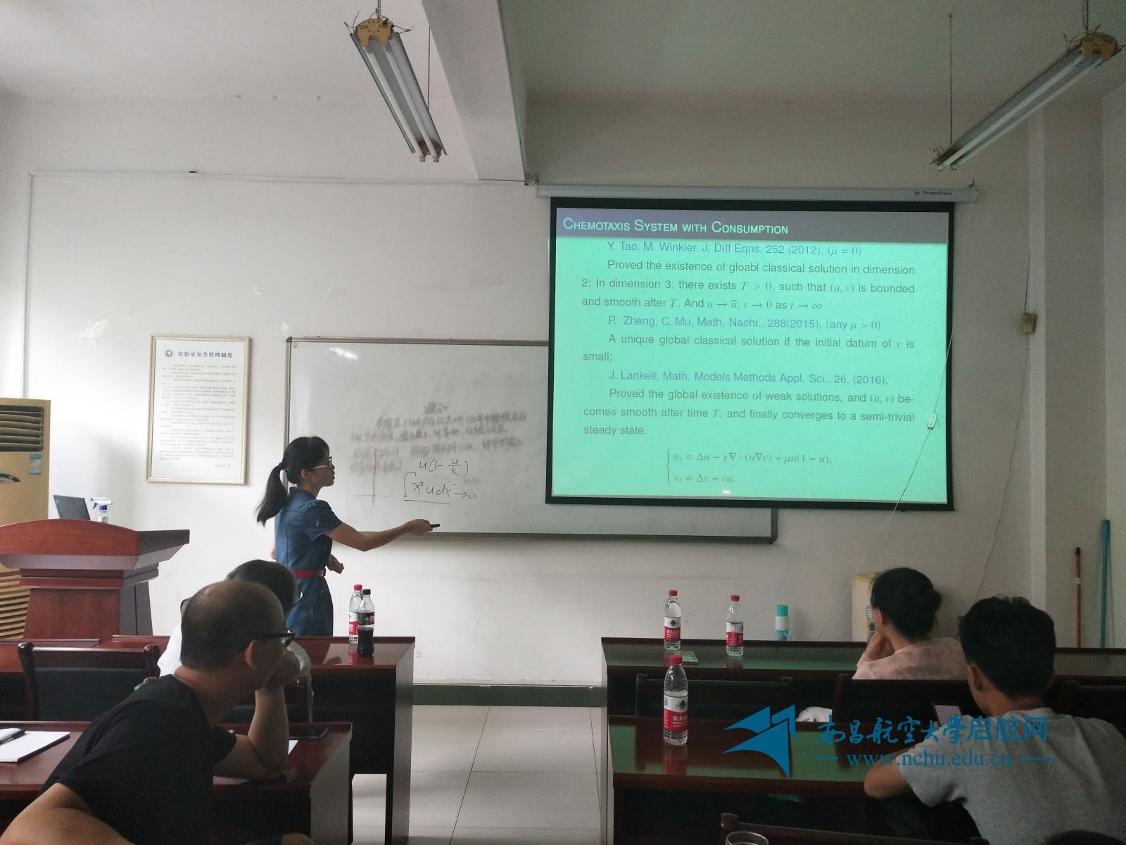 启航网讯 2018年5月30日上午,华南师范大学数学科学学院博士生导师金春花教授在数学与信息科学学院D209教室给我校数学与信息科学学院教师及学生作了一场题为“Global Solvability and Large Time Behavior to a Chemotaxis Model with Nonlinear Diffusion”的学术报告。